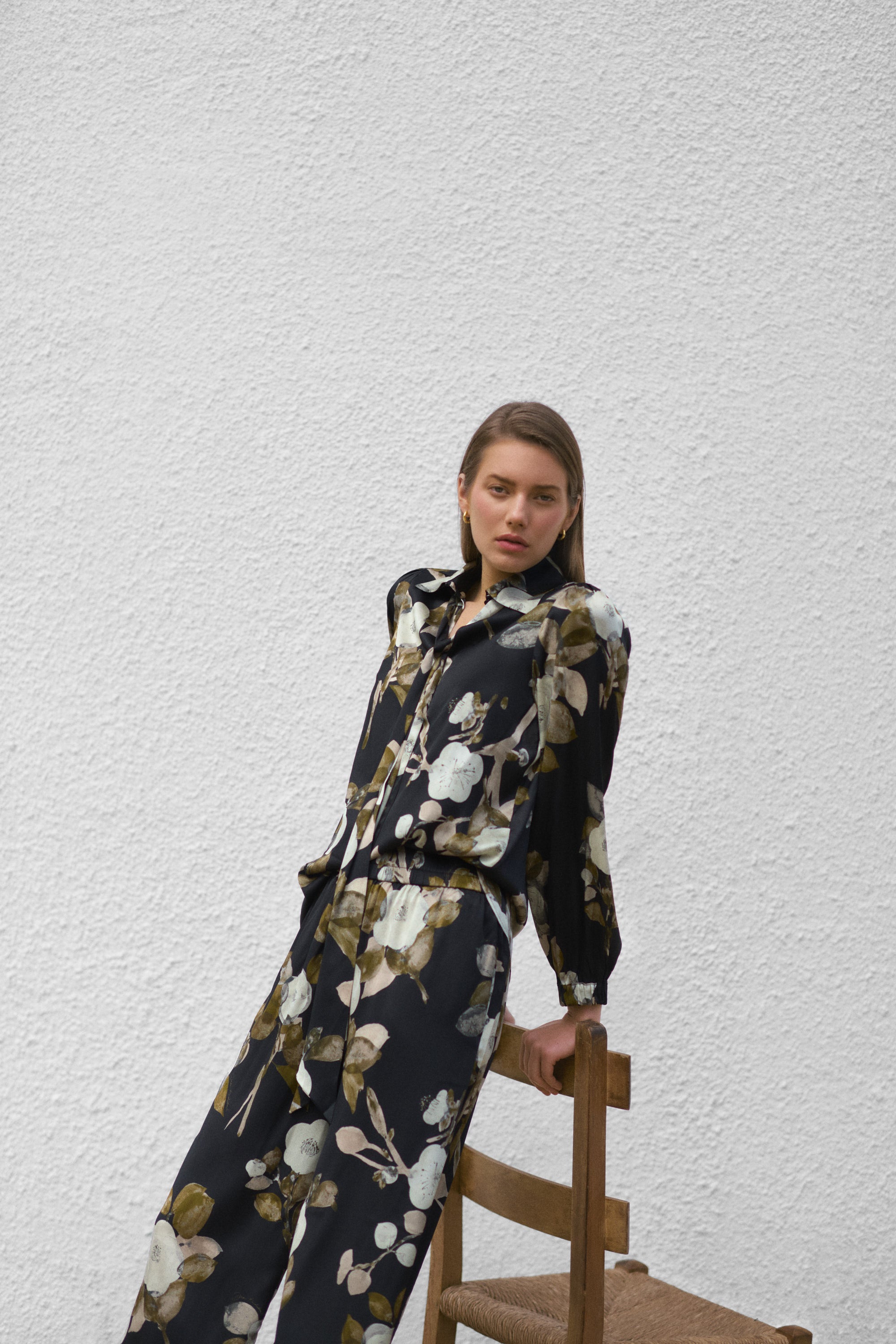 For Winter 25, the graceful tragedy of Madame Butterfly is reimagined through design details drawn from traditional Japanese dress. Kimono sleeves, obi-style belts and sculptural silhouettes meet rich European fabrics and contemporary tailoring. Signature prints include ginkgo leaves, symbols of resilience and oversized camellias, reflecting inner strength. Eveningwear evokes the romance of the opera house, with floral devoré velvet, gold lamé jacquards and intricate beading bringing drama and depth.