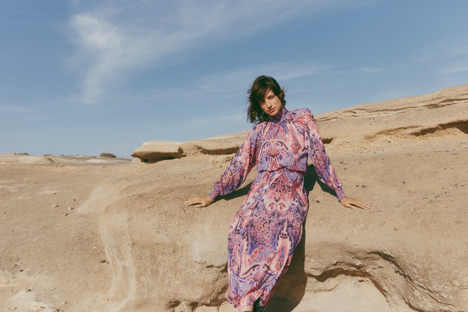 Back on the train, silky dresses are perfect for cocktails and dinner. High necks and empire-line seams highlighted with piping have a slightly bohemian air whilst a fitted shape with a tear-drop slit down the back reveals an unexpected glimpse of skin. For a more youthful attitude, a short dress in structured floral cloqué jacquard is the perfect little black dress, especially when teamed with boots. And, as the train rattles on through the night, settle down for a last martini in a vivid print silk kimono - after all, some journeys you don’t want to end.