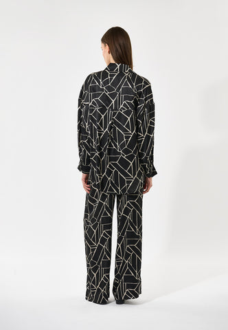 Relaxed and easy going yet still very chic, this silk shirt in an abstract oversized monochrome print can be dressed up or dressed down. Flap pockets at the chest and tiny covered buttons add to its sophisticated appeal.