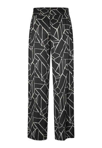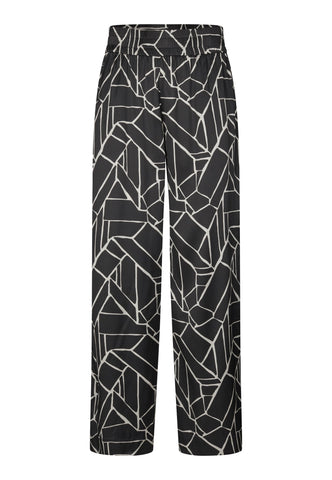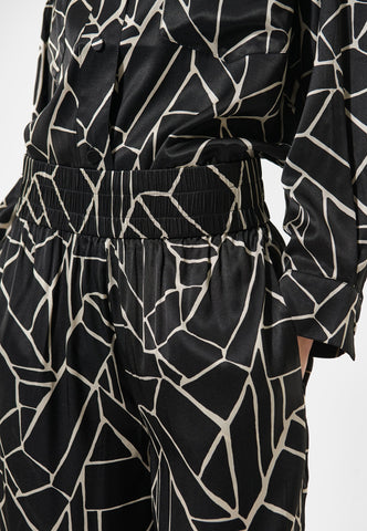Wide leg pants in silk have a timeless appeal and this pair in a bold black and white print with a wide elastic waistband are a great example. Wear with a simple top or a knit for an effortlessly stylish outfit.