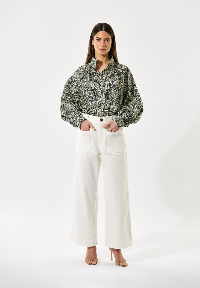 These versatile straight-legged trousers should be in every wardrobe. Made from white denim, they are high waisted and slightly cropped at the ankle with patch pockets at front and back. An inner logo waistband and embroidered logo on the back pocket are stylish finishing touches.