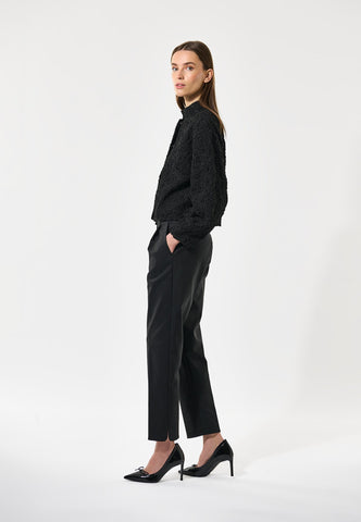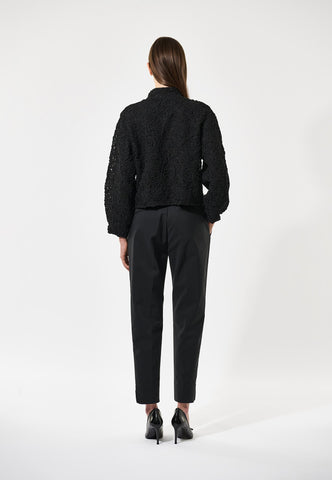 Minimal details on this stunning jacket allow the exquisite black lace fabric make the real statement. Closed with a fly front and snap stud fastenings, the jacket has a stand collar, sculptural sleeves and is cropped to finish at the waist. To make a truly special outfit, pair with matching Alma skirt.