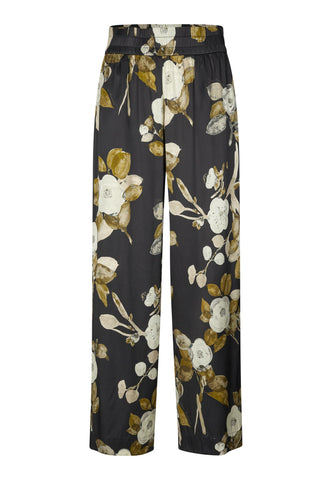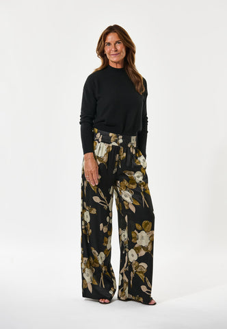 Wide leg pants in silk have a classic appeal and this pair in floral print with a wide elastic waistband are a great example. Wear with a simple top or a knit for a very chic outfit.