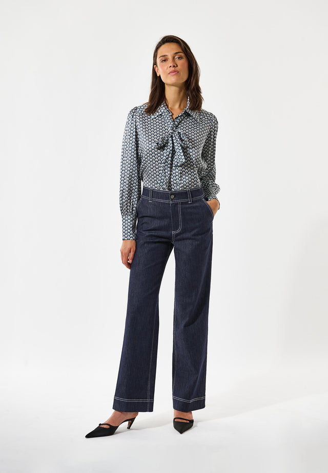 A silk blouse is always a great addition to a wardrobe and this version in a small graphic print is chic and elegant. It comes in a regular fit with full sleeves and long cuffs and has a removable matching scarf at the neck which can be tied in a multiple of ways.