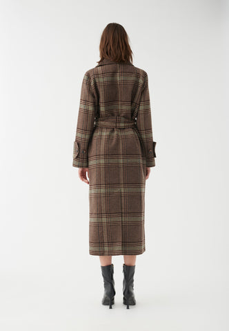 Perfect for winter days, this wool blend coat has a classic and timeless air of sophistication. The tie belt accentuates the silhouette whilst the oversized cuff details and bold check add a contemporary touch.