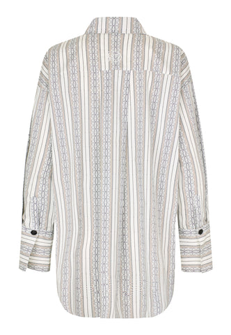 Oversized and relaxed in attitude, this easy fit cotton shirt in bold decorative stripes has a classic collar and deep cuffs. A half bib panel and breast pocket are cut horizontally to give a graphic twist to the shirt. It fastens down the front with a fly that hides the buttons.