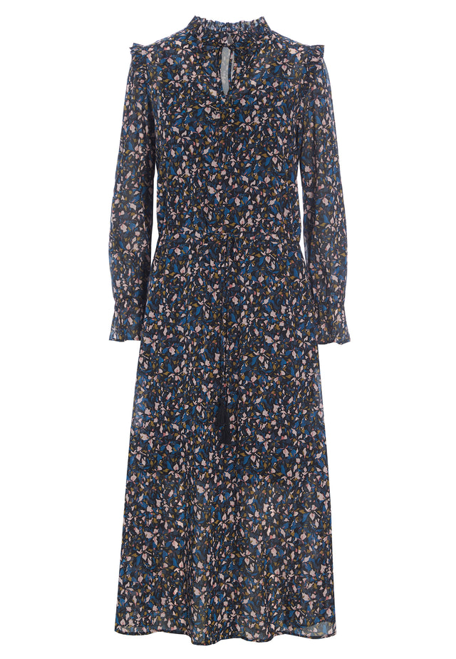 Dress with ruffle details, string in waist and elastic cuffs