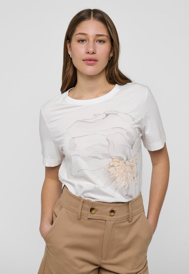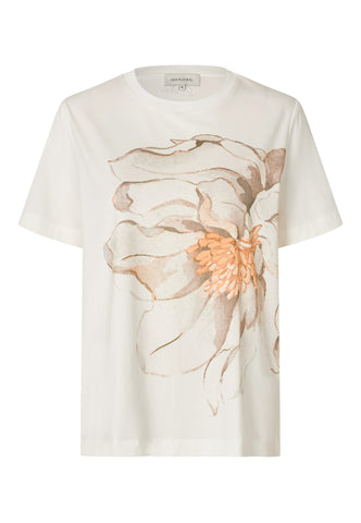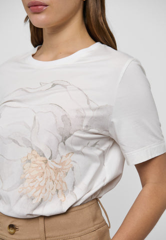 A classic jersey T-shirt featuring a large, artistic floral print on the front for a soft and feminine look. Designed with a ribbed crew neckline and a subtle logo at the back of the neck. Wear it casually with jeans or chinos, or style it under a blazer for a more refined, modern outfit.
