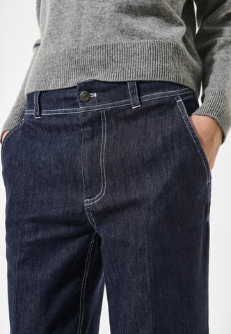 A contemporary and stylish alternative to jeans, these denim trousers have a straight leg and fit close to the hips. White contrast twin needle stitching adds a workwear vibe as do the two rear patch pockets with an embroidered logo.