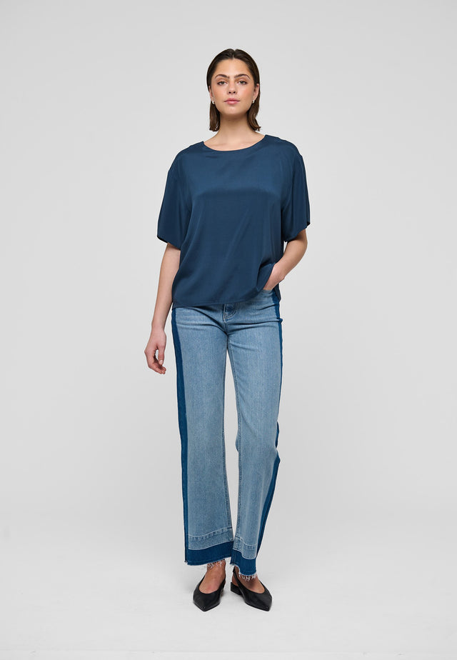 The pure minimalism of a simple t-shirt in white silk speaks for itself. Luxurious, elegant and timeless, it is in a regular fit with loose sleeves and closes with a single button and loop at the back neck. This top works perfectly under a blazer, paired with a skirt or even worn with jeans.