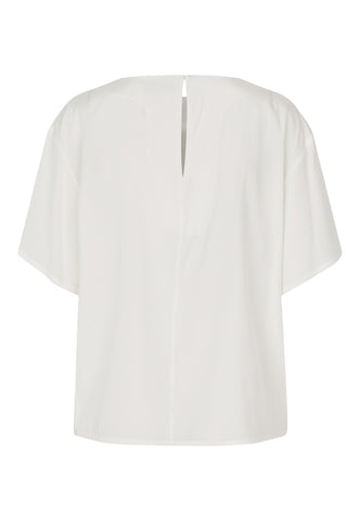 The minimalist purity of a simple t-shirt in deepest navy blue silk speaks for itself. Luxurious, sophisticated and timeless, it is in a regular fit with loose sleeves and closes with a single button and loop at the back neck. This top works perfectly under a blazer, paired with a skirt or even worn with jeans.